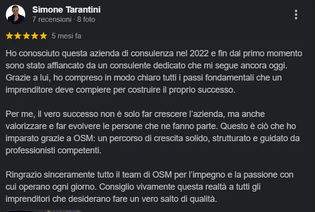 In più, riceverai anche una sessione privata di 30 minuti con un consulente OSM, per applicare il metodo alla tua realtà e capire da dove iniziare davvero.